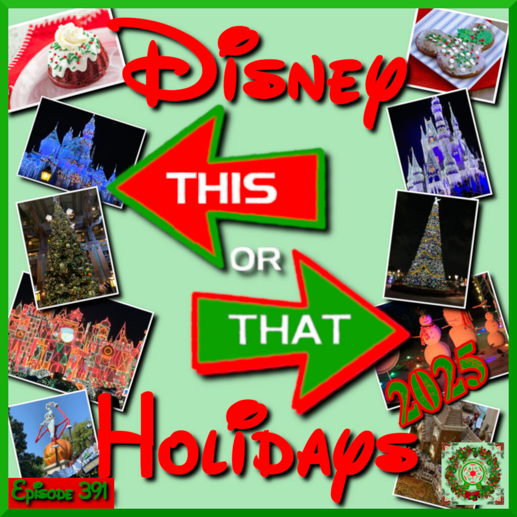 We recently received a reminder that just about 4 years ago we did a fun little episode base on the Holiday Season that we really enjoyed. Obviously that was quite a bit ago. New wonderful things have been added to the Disney Parks & Resorts. Classic things have changed slightly and others have gone away. So, we thought this would be a great time to revisit and play a new round of Disney Holidays This or That – 2025. Michelle, who is well known as “The Game Show Hostess with the Mostest” will lead us through our seasonal contest. So, you know it’s gonna be great! Listen to what Disney Holiday attractions, food and decor she pits against one another and play along to see if our selections match yours.