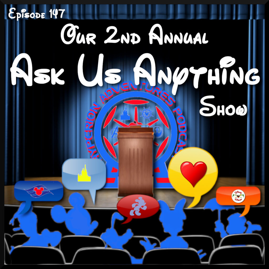 We had such a wonderful time answering your questions last year, we just had to bring in back for another go ’round. Yep! It’s Our 2nd Annual “Ask Us Anything” Show! We discuss all the wonderful questions you sent us and share our points of view about all things Disney and ourselves. Learn a little more about us and laugh along as we try our best to respond to every spectacular query thrown our way.