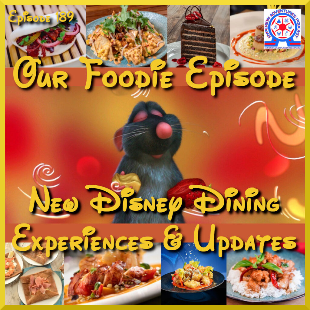 If you’ve listened to this show for a long time, then you know we are often very hungry when we record it. That definitely is not going to change this week. That’s because this week we are doing Our Foodie Episode – New Disney Dining Experiences & Updates. We share the many new and wonderful food based changes that are coming to the parks. We share some of the favorite restaurants that are new or, at least, new to us and discuss what dishes we’re excited to sample on our next visit to Walt Disney World and Disneyland. Don’t forget all the food available currently at the Epcot International Festival of the Arts. You know we’re going to talk about that, as well.